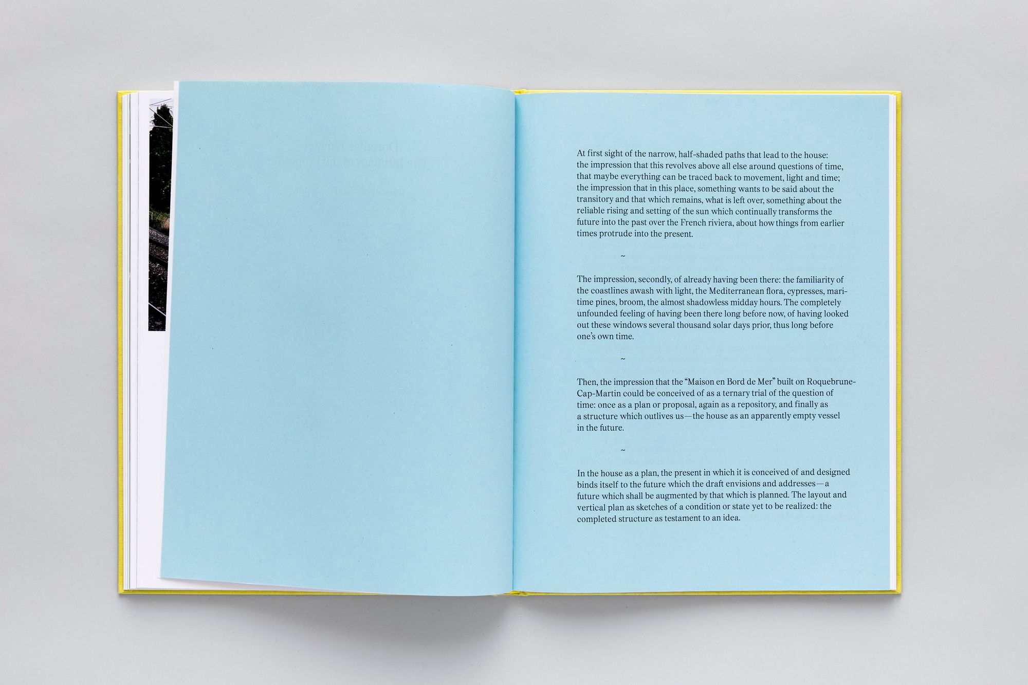 The designer and architect had built a house on the French Riviera in the late 1920s, initially for herself and her partner Jean Badovici. Le Corbusier, for reasons that are slowly finding their way into architectural theory and providing grounds for revision, (recently expounded by Beatriz Colomina in Interstices), built a cabin on the neighbouring property overlooking the property of Gray and her partner. He then proceeded to immortalise himself in various murals – “free of charge” as he notes in his memoirs. Uninvited and against the architect’s wishes, he framed his transgression as a gift. Gray’s objections went unheeded, so that the intervening 100 years of architectural historiography have told his version, and not only have his interventions been vindicated, but his fame and his painting overshadow her design to this day. The book, Sun Breakers, a photographic portrait of the building by Jürgen Beck, does without them, without Corbusier, without a cabin and without sexist and homophobic portrayals of women and families. Beck’s photographs engage in a dialogue with the architectural space. Through the titular Sun Breakers, a shutter-like screen from the Mediterranean sun, photographic and architectural locations lose their objective frames, and the space opens into an expression for other forms of living and working, a malleable structure for flexible days and relationships. He reveals a design that addresses psychological and emotional needs, that inscribes things with their own names and relationships long before auto-fiction and the affective turn. Beck moves inquisitively around the E. 1027 house, which has only recently been elevated to an architectural icon. He takes summer strolls beside and into it, and avoids clear horizon lines or overviews that would enlarge what was planned as an intimate space for work, leisure and sport. Accompanying the pictures is an essay by Swiss author Dorothee Elmiger, who expands Beck’s view of Gray with clearsighted fragments and thoughts that shift between impression and analysis. Her text is particularly concerned with planning as a way of imagining the future, which is the essence of Gray’s work. The book’s design by graphic designer Ina Kwon gives the whole thing a mix between magazine cover and hardcover linen binding, reflecting Jürgen Beck’s approach to the project: to encapsulate the design, characterised by its openness and lightness and what comes alive within it, in a story poised between glamour and critique.