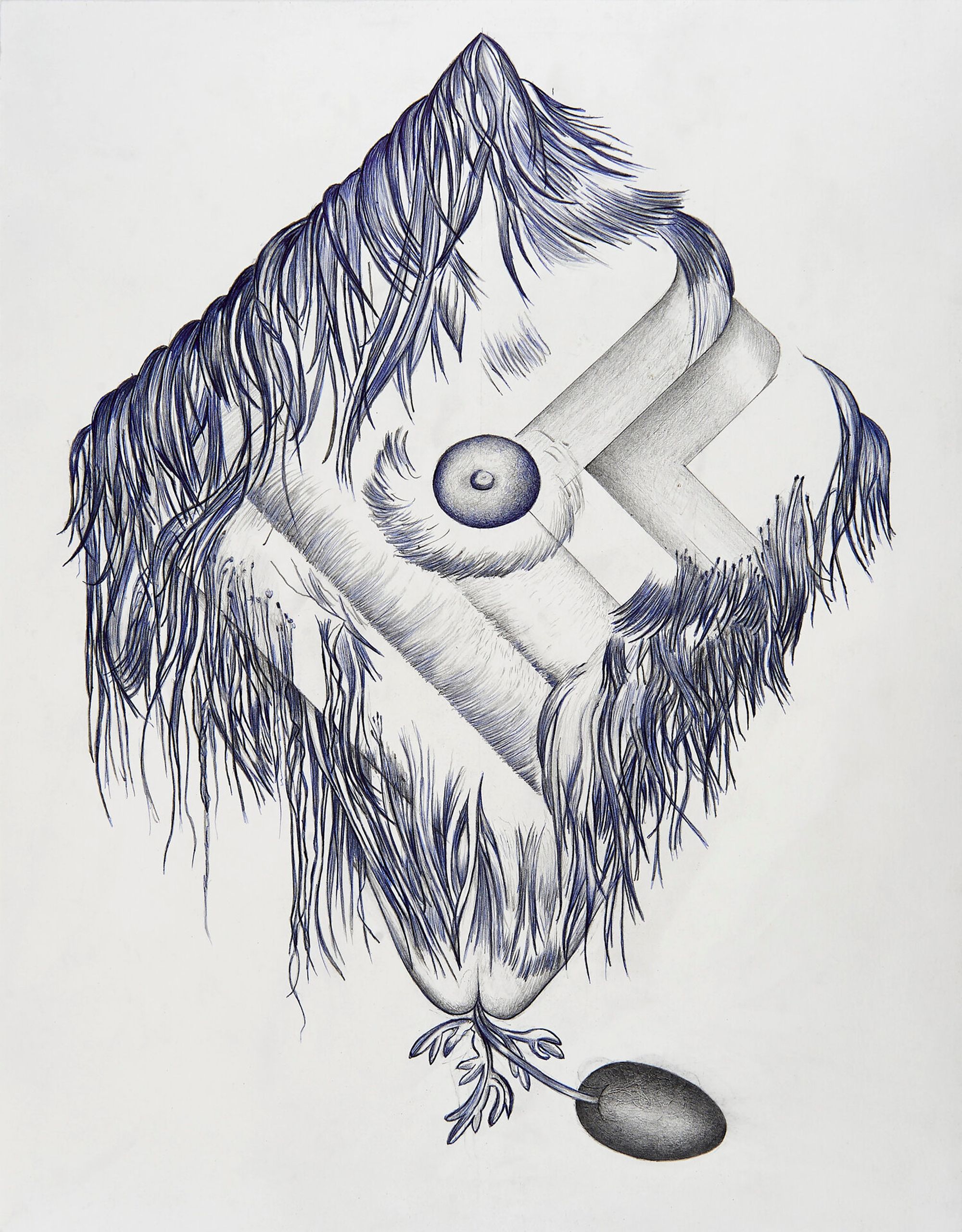 If Rasmus is communicating with us via a distant past, Marlene McCarty is a visitor from a potential future. She uses drawing as a tool for meditative, speculative thinking like few other artists. Her drawings show a future that has mutated, swapped genes, and reincorporated the ruins of the past out of an implacable will to go on. Wilding Vibe (cicuta maculata), for example, perhaps shows an abstract work, but it has become a trellis to a weed, spotted water hemlock, that is very fond of water and very poisonous to humans. A member of the carrot family, it was known as "suicide root" to the Iroquois.
