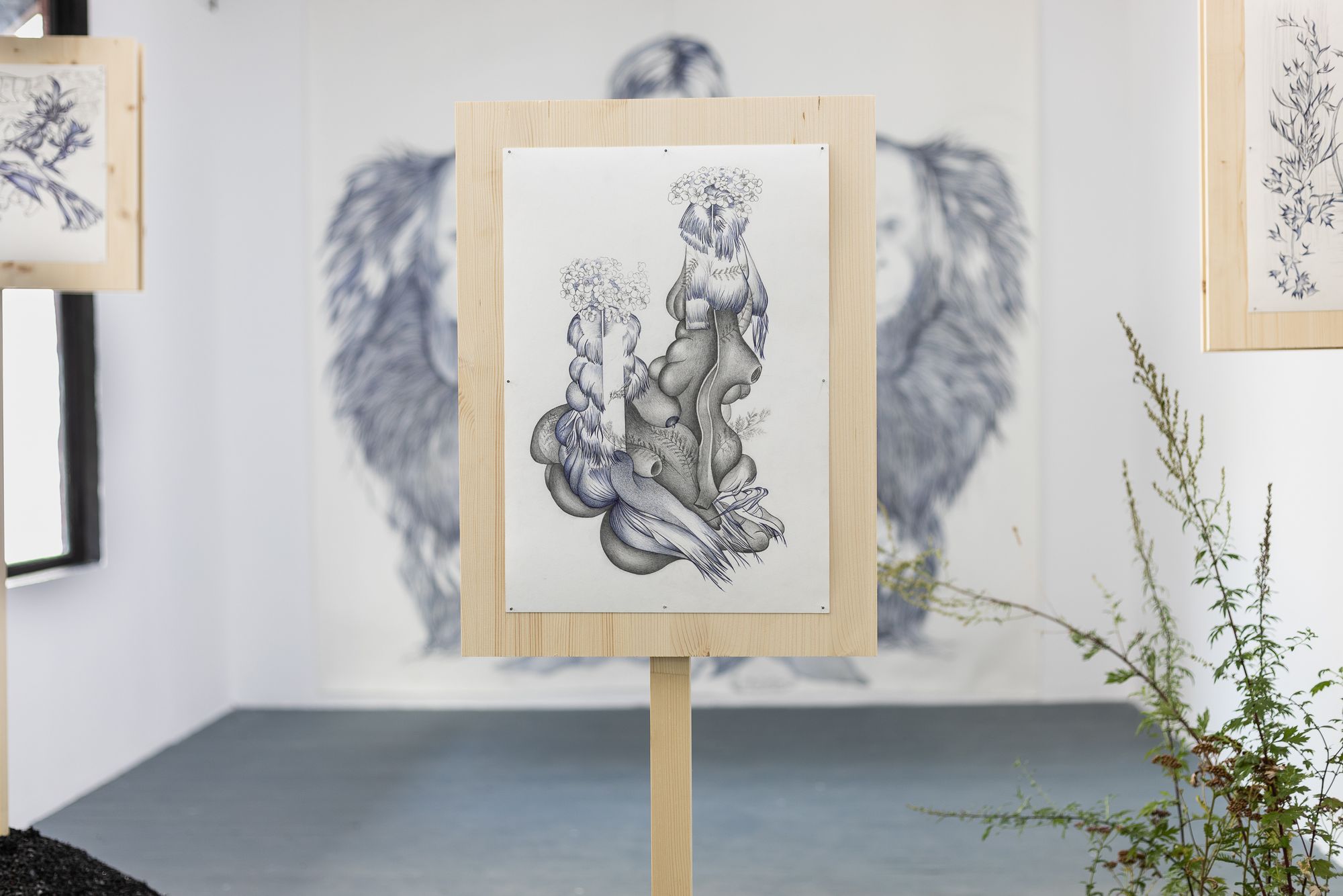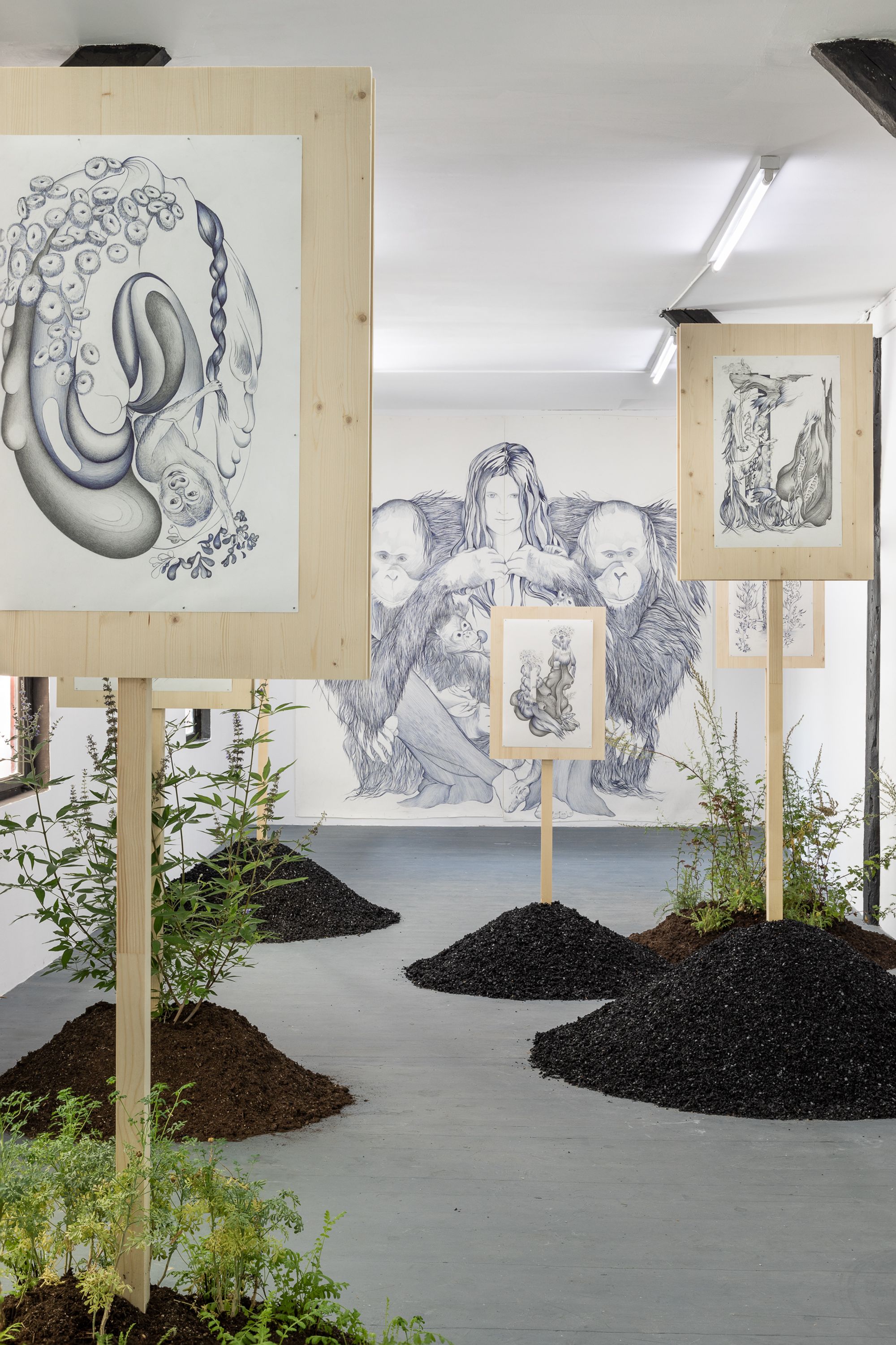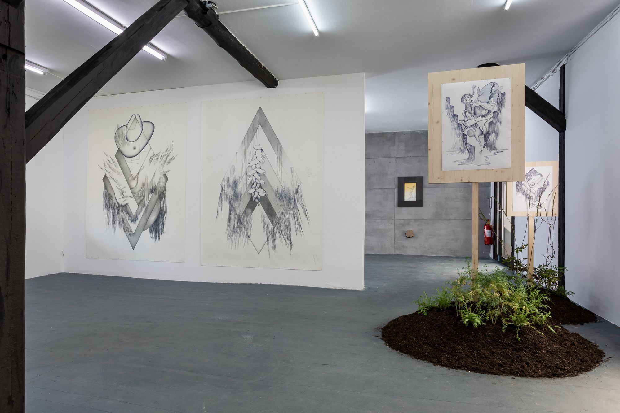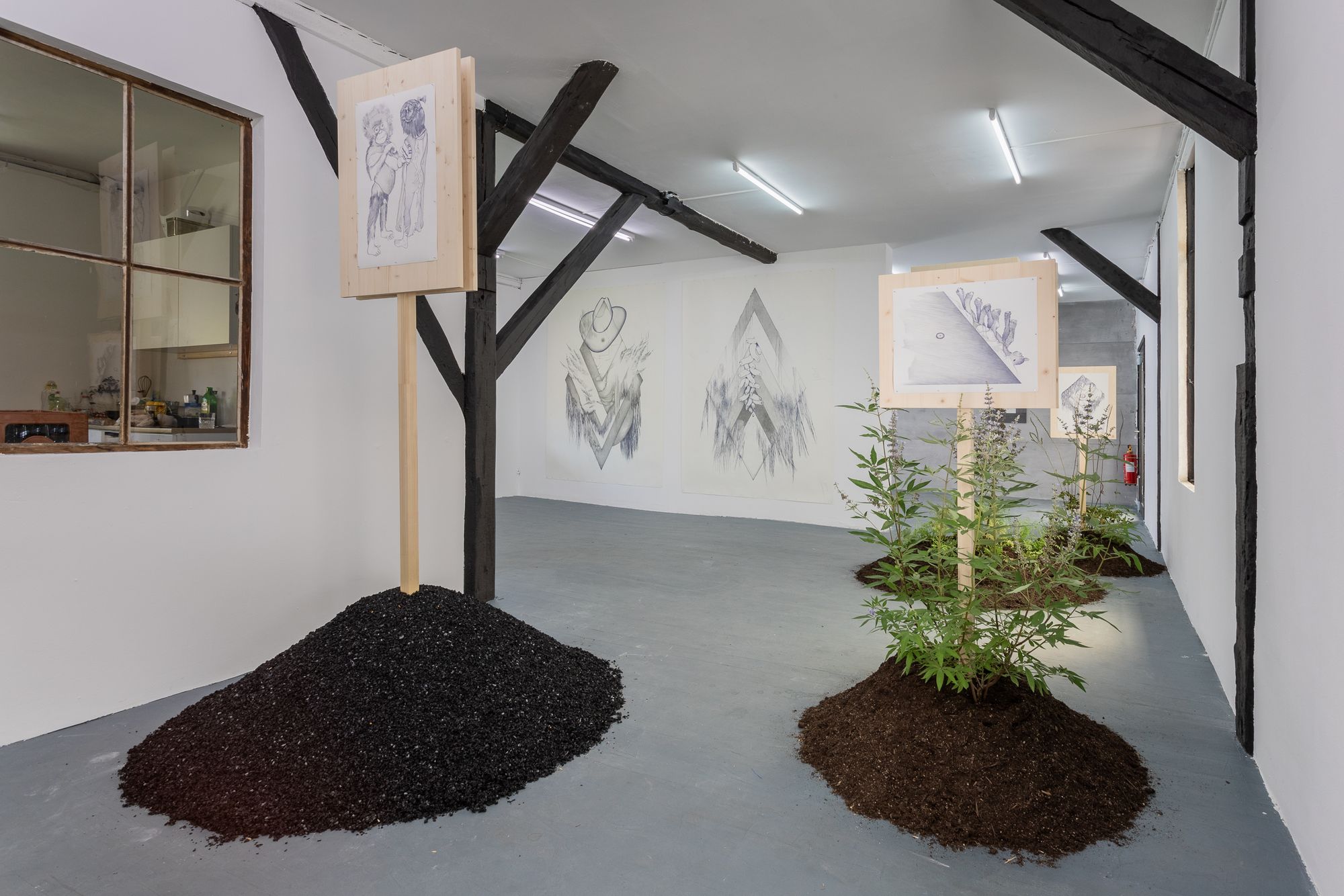 Rasmus Myrup (born 1991, DK) currently lives and works in Copenhagen. Informed by our belonging to the natural world, his work seeks to investigate the big arc of humanity’s history and ideas in the context of personal emotions and relations. Working primarily with sculptural installations and drawing, he employs empathy as a strategy to transverse times, species and worlds to investigate human existence. This way everything from dinosaurs to neanderthals or trees can provide new insights in relation to death, sex and power.