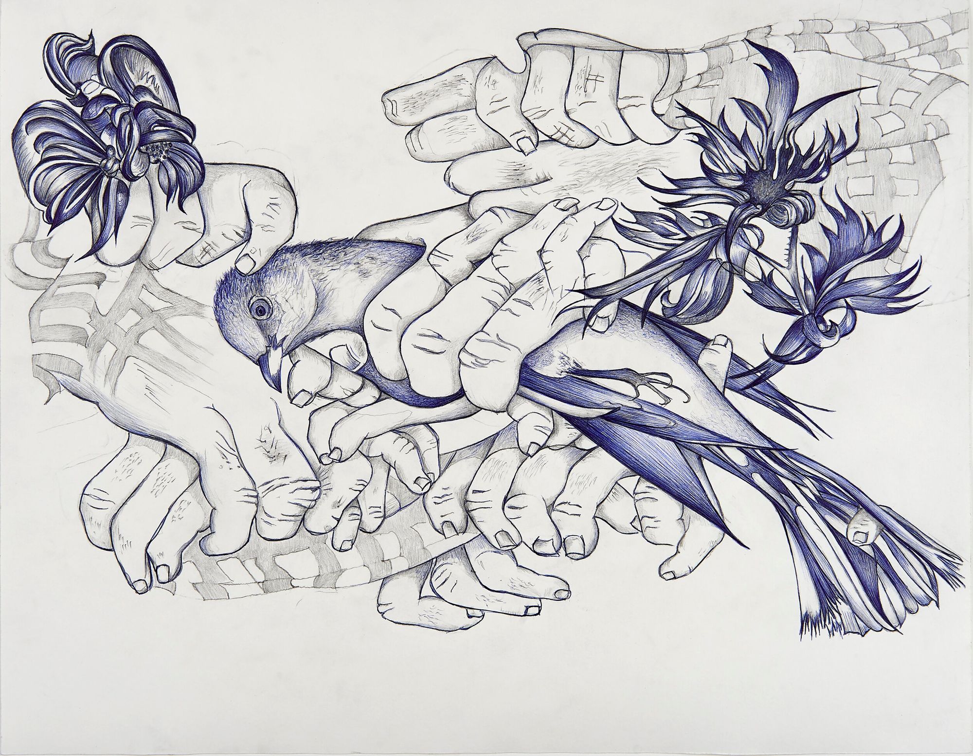 Marlene McCarty (born 1957, USA/CH) studied at the Allgemeine Kunstgewerbeschule in Basel from 1978 to 1983. After moving to New York in 1983, she worked as the interim director of MoMA’s graphic design department and later with Tibor Kalman at the well-known design firm M&Co, among other things. In 1998, she founded Bureau with Donald Moffett, a transdisciplinary design studio that produced art, film titles, and political and commercial works. She was an early member of the AIDS activist collective Gran Fury, which gained international recognition through their appearance at the 1990 Venice Biennale and other interventions. Since the 1980s, McCarty has consistently worked with a variety of mediums, though drawing with everyday materials such as graphite or a ballpoint pen is central to her work.